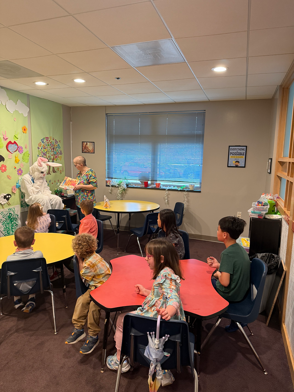 A special highlight of the morning was a visit from the Easter Bunny, who shared a delightful story titled The Parable of the Easter Lily. The children listened closely and enjoyed the meaningful reminder of new life and God’s beautiful gifts in creation. After the story, they got creative by making their own Easter masks, decorating them with bright colors and festive designs that showed their joy for the season.